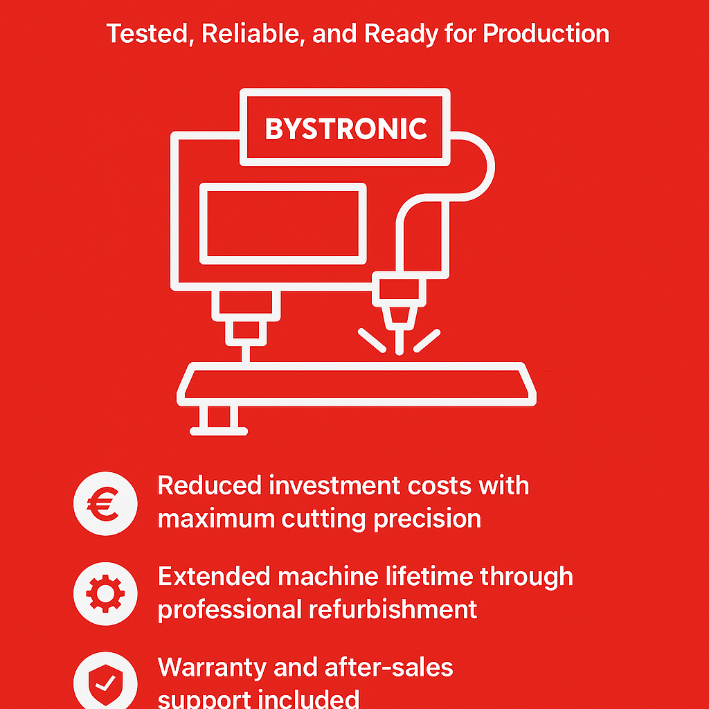 At LaserEVO, we offer professionally inspected and refurbished Bystronic fiber and CO₂ laser cutting machines — directly from experienced specialists