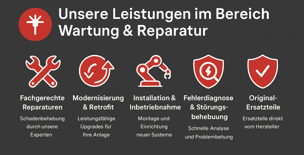 ✅ Kombination aus Wartung, Reparatur, Fehlerdiagnose und Retrofit älterer Anlagen